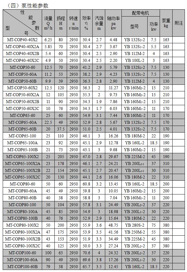 MT-COP系列磁力泵是在AY型離心油泵的基礎上加磁傳動裝置而成,其性能參數和安裝尺寸與同型號的AY泵相同